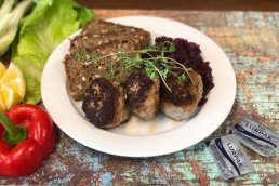 Frikadeller med hjemmelavet rødkål og rugbrød